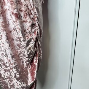Keywords: Venus pink dress, velvet off-shoulder dress, ruched party dress