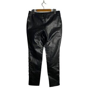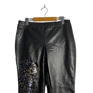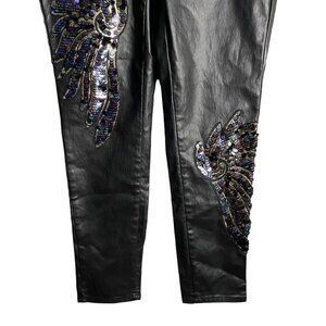 Faux Leather Sequin Wing Stretch Tapered Leg Pants