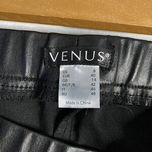Venus Women's Black Faux Leather Sequin Wing Stretch Tapered Leg Pants