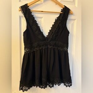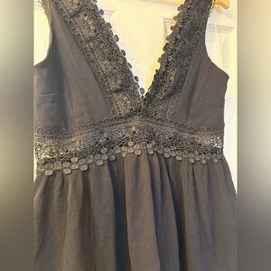 Venus black lace lined babydoll v-neck size 10 zip back top or mini dress