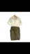 White upper is like a button down shirt and lower is pleated with ruching on the sides.