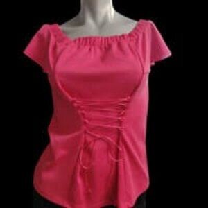 Venus hot pink off lace up accent front off shoulder corset look top Size XL