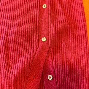 Venus red ribbed rayon blend long sleeve knit sweater dress new without tags. Soft and heavy knit that feels luxurious, slim fit, long sleeves, golden buttons embellishments, unlined. The jersey is made of 80% rayon and 20% nylon, and it’s very stretchy. Featuring faux button details and a side slit, this ribbed dress will turn heads at every event. Perfect for holiday parties or your 9-to-5, you'll wear this body-skimming style again and again. Marked size XS but I’m a size M and it fits well because it’s very stretchy, please see measurements. All measurements are approximate and taken with the garment laying flat: Pit to pit 14" (it stretches up to 19’’-20’’) Total length 36’’. This item comes from a smoke free, pets friendly home. Recycled bags/box used when possible. Please, let me know if you'd like any additional info. Thanks for watching!