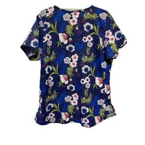 Vera Bradley Blue Tropical Women's Scrub Medical Vet Uniform Top Size Medium