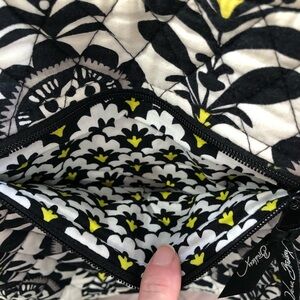Quilted pattern, like new, black white and yellow floral geometric pattern. Zippered pockets inside and out. Don’t miss out on this fashionable purse!