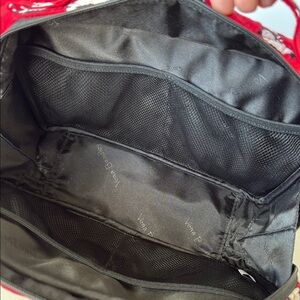 This vibrant red cosmetic bag by Vera Bradley features a playful penguin pattern, making it a stylish choice for organizing your essentials. Crafted with a durable quilted cotton, it offers a whimsical touch to your travel accessories. The secure zipper closures ensure your items stay safe and organized.