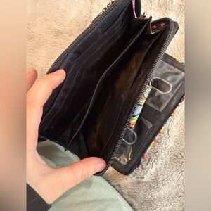 Straps and some places on the bag are definitely worn out as shown in pictures hardware on bags are also worn out shown in picture also. The bag in not spotless as it has been obviously loved by someone else