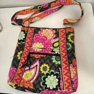 Vera Bradley Ziggy Zinnia Pink Orange Floral Iconic Hipster Crossbody Zip Bag