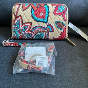 Vera Bradley Zip Around Wallet Tan Floral BRAND NEW RFID Protection Leather Tag