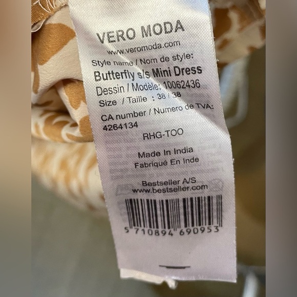 Vera Moda brown and cream butterfly mini dress - size 38
