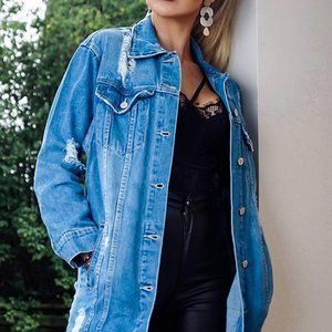 Stylish oversized longline denim jacket