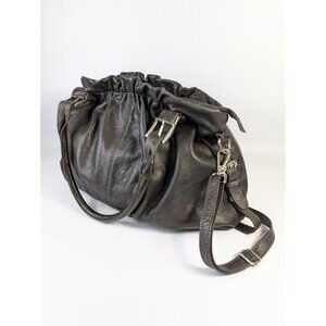 Vera Pelle Leather Purse Slouch Hobo Bag Made in Italy Brown 12” x 18”