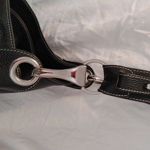 Black pebbled leather with white contrast stitching