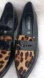 a pair of black loafers with a prominent leopard print detail on the vamp.