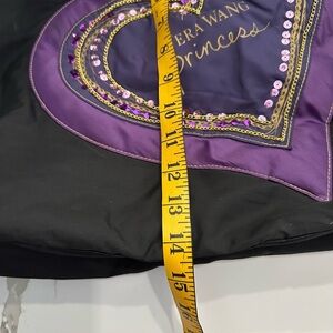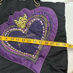 Stylish Vera Wang tote bag featuring a striking black and purple design. Perfect for adding a touch of elegance to any outfit.