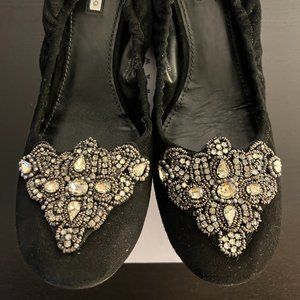 Black suede Vera Wang ballet flats, with intricate jewelled toe. Well worn but still in very good condition. Comes in original Vera Wang Lavender box. Pet and smoke free home.