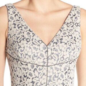 Vera Wang Lace Maxi Dress Beige Gray Piped V-Neck Formal Gown Womens 12 NWT
