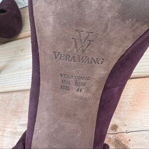 Vera Wang dark merlot bugandy purple suede back bow hidden platform heel pump. Leather upper leather lining. Size 41 US 9.5. These fit a little small more like a 9. Front platform 1” Back platform 5”