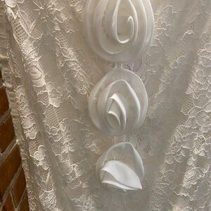 The ultra-elegant silhouette of the Verity white lace gown captures the essence of true love. This halter wedding gown is crafted in timeless corded lace and features a high halter neck that ties at the back, plus a chic scalloped neckline. Its sleek silhouette is finished with thigh high slits at the side seams and statement rosettes at the centre-back.