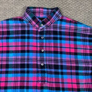 Vermont Flannel Co. Pullover Henley Shirt Men's Medium Blue Pink Plaid Check
