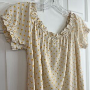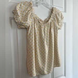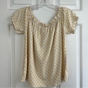 NEW NWT Polka Dot Birch Saffron Linen Short Sleeve Ruffle Trim VERO MODA Blouse Top Size Small