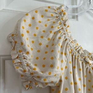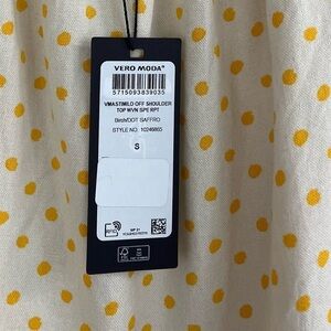 Vero MODA Off-Shoulder Linen Birch Saffron Polka Dot Boho Blouse Size S NWT