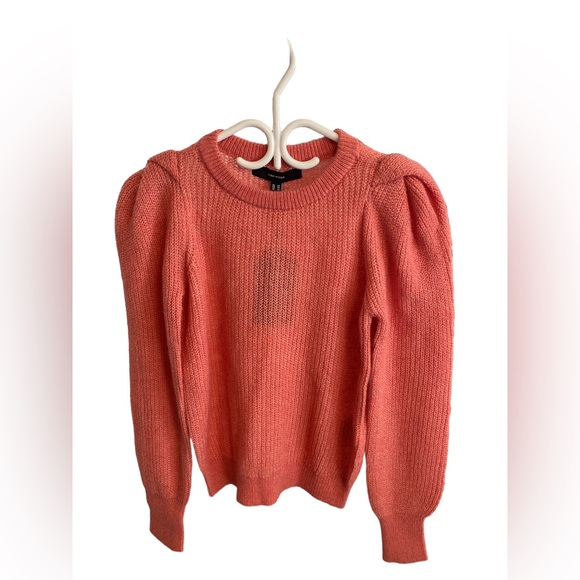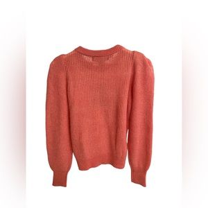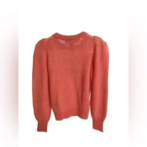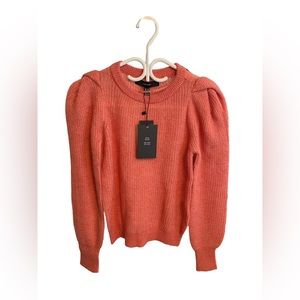 Crew neck ribbed sweater. Full length sleeves with puff sleeve detailing. Rib finishing by wrist, neckline and hemline. Brand NWT, never worn. Very stretchy material. Pit to pit measures 17”