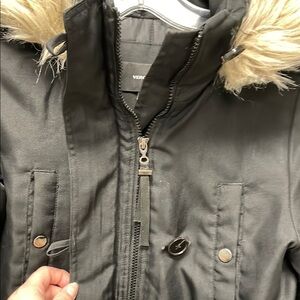 Vero Moda Black Excursion Expedition Parka with Faux Fur Hood Size Small EUC