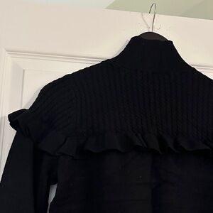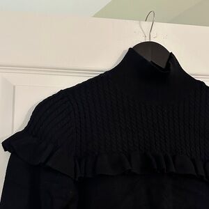 Vero Moda Black Mock Neck Knit & Ruffle Trim Sweater, size Small