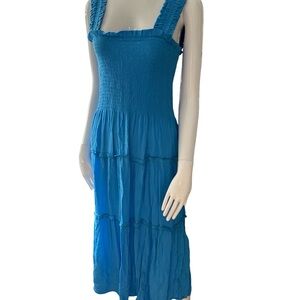 This elegant blue sundress by Vero Moda is ideal for wedding guests and cocktail occasions. It features a chic square neckline and a sleeveless design, offering a sophisticated and airy feel. The midi length and flowy silhouette provide a graceful and comfortable fit. New with tags.