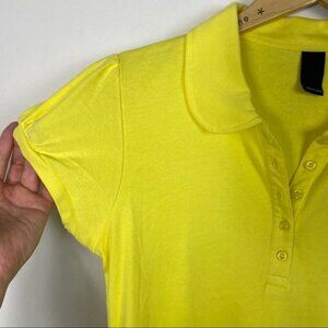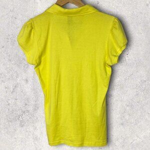 Vero Moda Bright Yellow Puff Sleeve Polo Shirt Short Sleeves Button Henley Top M