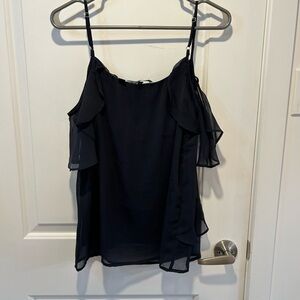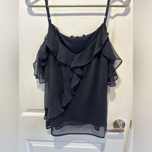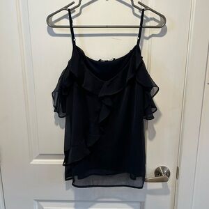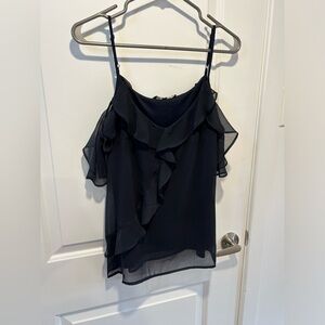 Elevate your style with this chic Vero Moda black cami featuring delicate ruffle details and an elegant cold shoulder design. Made from a lightweight, flowy fabric, it’s perfect for both casual outings and dressier occasions.