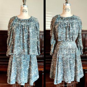 Vero Moda Chiffon Blouse & Skirt Matching Set Sage, Grey, Blue, White Small EUC