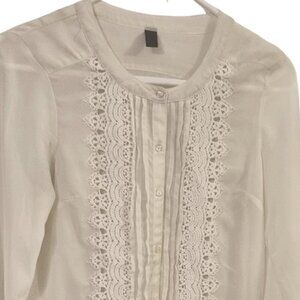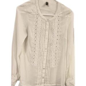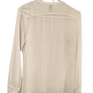 Vero Moda cream chiffon blouse with beautiful crochet lace detailing down front and on cuffs. Darts at bustline.