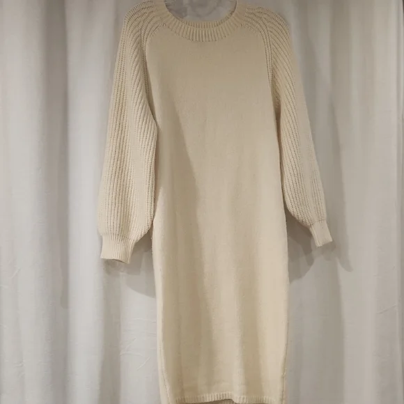 Vero Moda Cream Rib-Knit Crew Sweater Dress