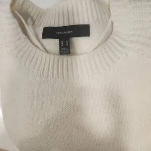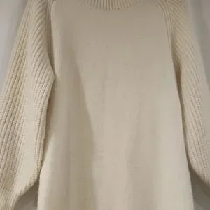 Soft cream pullover with a ribbed crew neckline. Lightweight knit for easy layering. Minimal, versatile style for everyday wear.