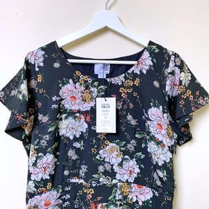 Pretty black dress with cherry blossom floral pattern. Flutter sleeves, fully lined. Great for the office under a blazer, or with tights and boots for an evening out.