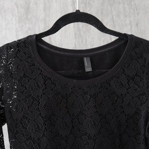 - Lace only appears in the front of the sweater, as well as the sleeves