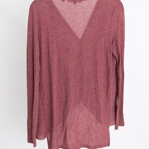 Vero Moda (size S) long-sleeved, sheer jersey material, draped in the front with V-neck and longer in the back, burgundy/wine colour