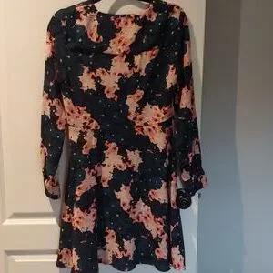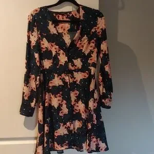 Vero Moda long sleeve mini dress Size Small Dark Green with pink floral Full button front Great used condition
