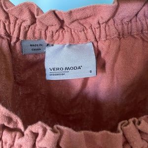Off-shoulder top in salmon/pink colour from Vero Moda.