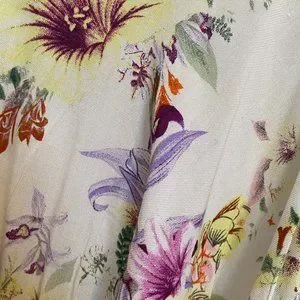 White/floral romper with belt, front pockets, and flair sleeves. Two front pockets. Never worn.