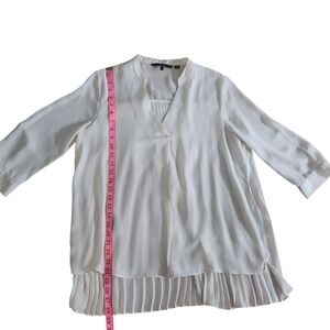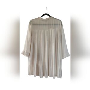 Vero Moda Sz Sheer Cream Off White Blouse Mandarin Collar Cuffed Sleeves Boho