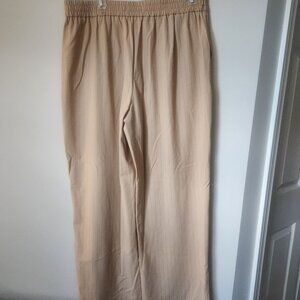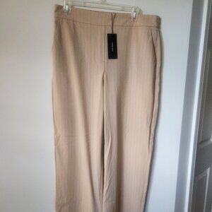 NWT Vero Moda ladies trousers, size XL. Irish cream colour with red pinstripe. Flat front, elastic back waistband, wide leg style. Inseam approximately 32 inches. Each leg measures approximately 30 inches at the crotch. Front pockets. Polyester and viscose blend fabric. Style 10279649. Non-smoking home, no pets.
