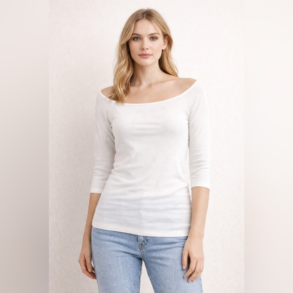 • Off-shoulder / wide scoop neckline