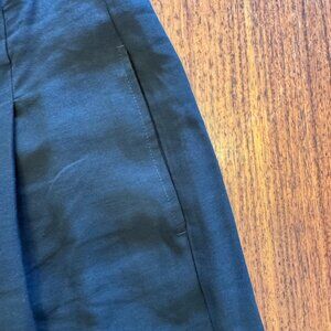 Two mother-of-pearl button closures on the front with zipper and inside large clear button for additional support