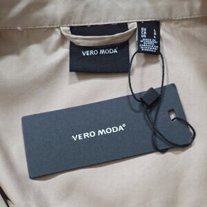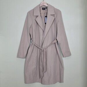Vero Moda Wrap Coat Womens L Beige Belted Mid Length Pockets Lightweight Preppy