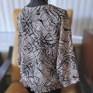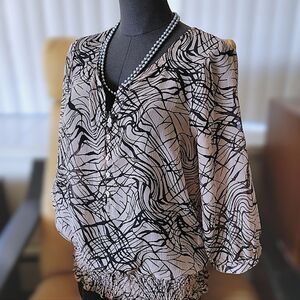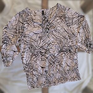 Vero Moda beige semi sheer Graphic ¾ Sleeve Top size L
