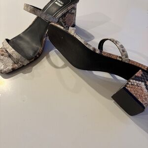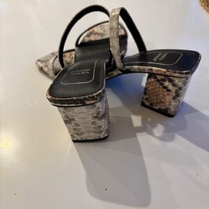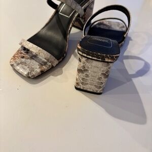 worn on one occasion. They are in excellent shape. They have an elastic strap across the top strap for flexibility and fit. Size 38, which is equivalent to aWorn on one occasion. They are in excellent shape. They have a elastic strap across the top strap for flexibility and fit. Size 38, which is equivalent to a size 7 1/2.