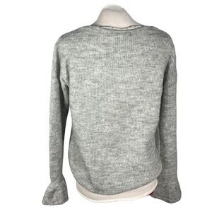 Vero Moda sweater blouse V Neck ruffle light grey melange wool size S